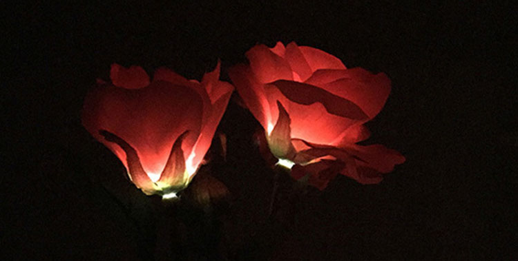 2, The rose solar flowers using a light sensation switch, it will turn on the light automatically during the night and turn off during the day.