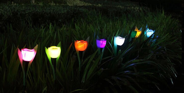 2, The tulip solar flowers using a light sensation switch, it will turn on the light automatically during the night and turn off during the day.